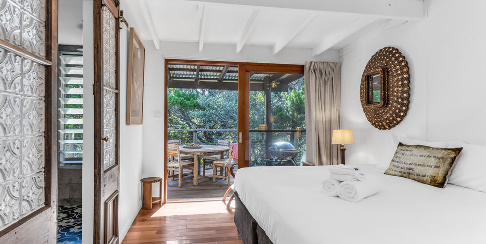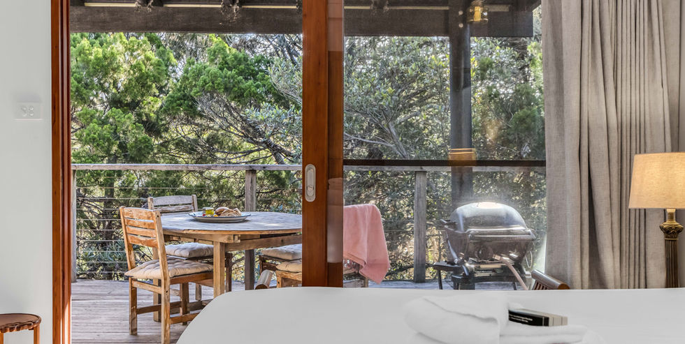 Beach House #8 is a charming two-bedroom retreat with a warm, rustic vintage feel. Each bedroom includes its own ensuite bathroom, offering comfort and privacy for up to four guests. The house is fully self-contained and features air-conditioning, ceiling fans, a Smart TV, and premium high-speed Wi-Fi. Outside, a spacious covered deck with a BBQ invites relaxed outdoor dining, all surrounded by peaceful coastal bushland. Bedding can be arranged as king beds or king singles to suit your needs.